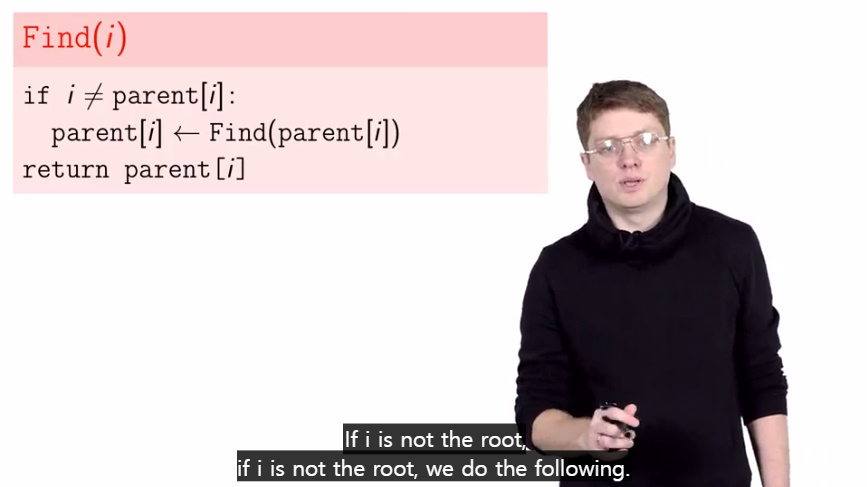 이때 Find는 i가 root가 아니라면 해당 노드의 부모노드를 찾아 parent[i]로 다시금 업데이트 한다. 이런 과정을 통해 압축이 가능해지는 것 같다.