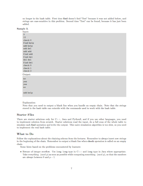 3번째 문제는 hash substring에 해당하는 find pattern in text에 관한 문제이다. Rabin-Karp 알고리즘을 활용해 해결하라는 지시가 있다.